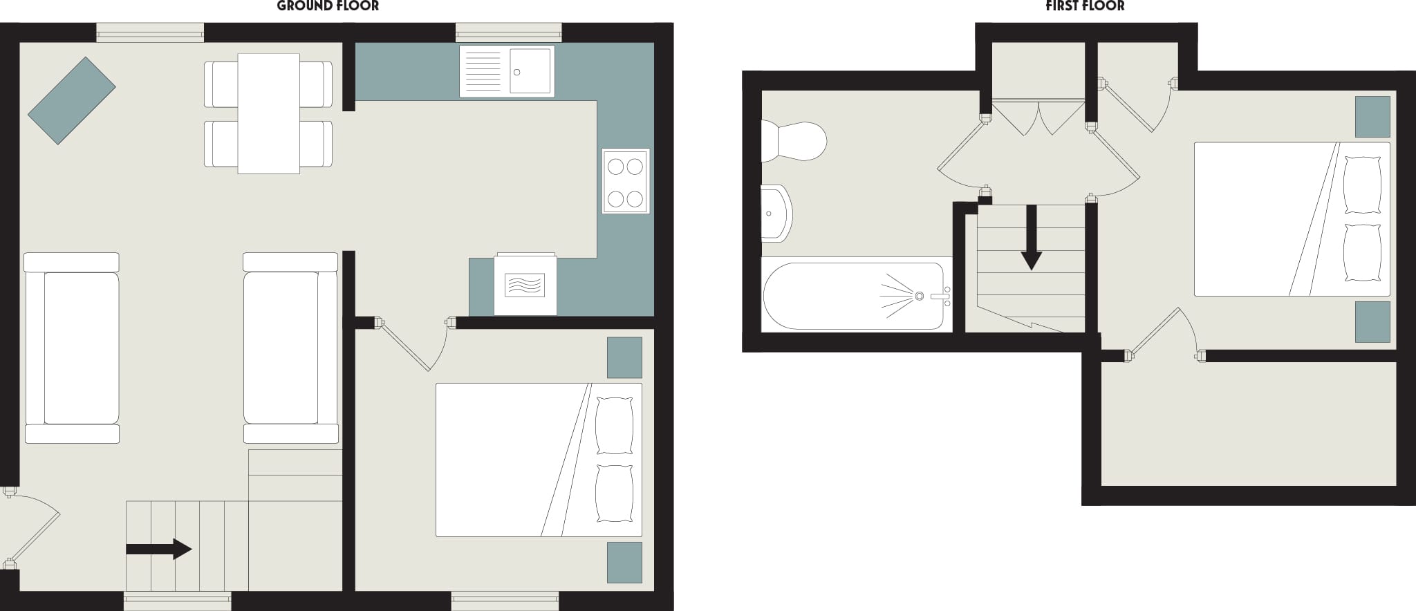 A luxury two bedroom cottage with two double bedrooms, one on the ground floor and one on the first floor. Also on the first floor is the family bathroom with bath and shower over the bath. Downstairs is fully equipped kitchen along with family lounge-diner area.
